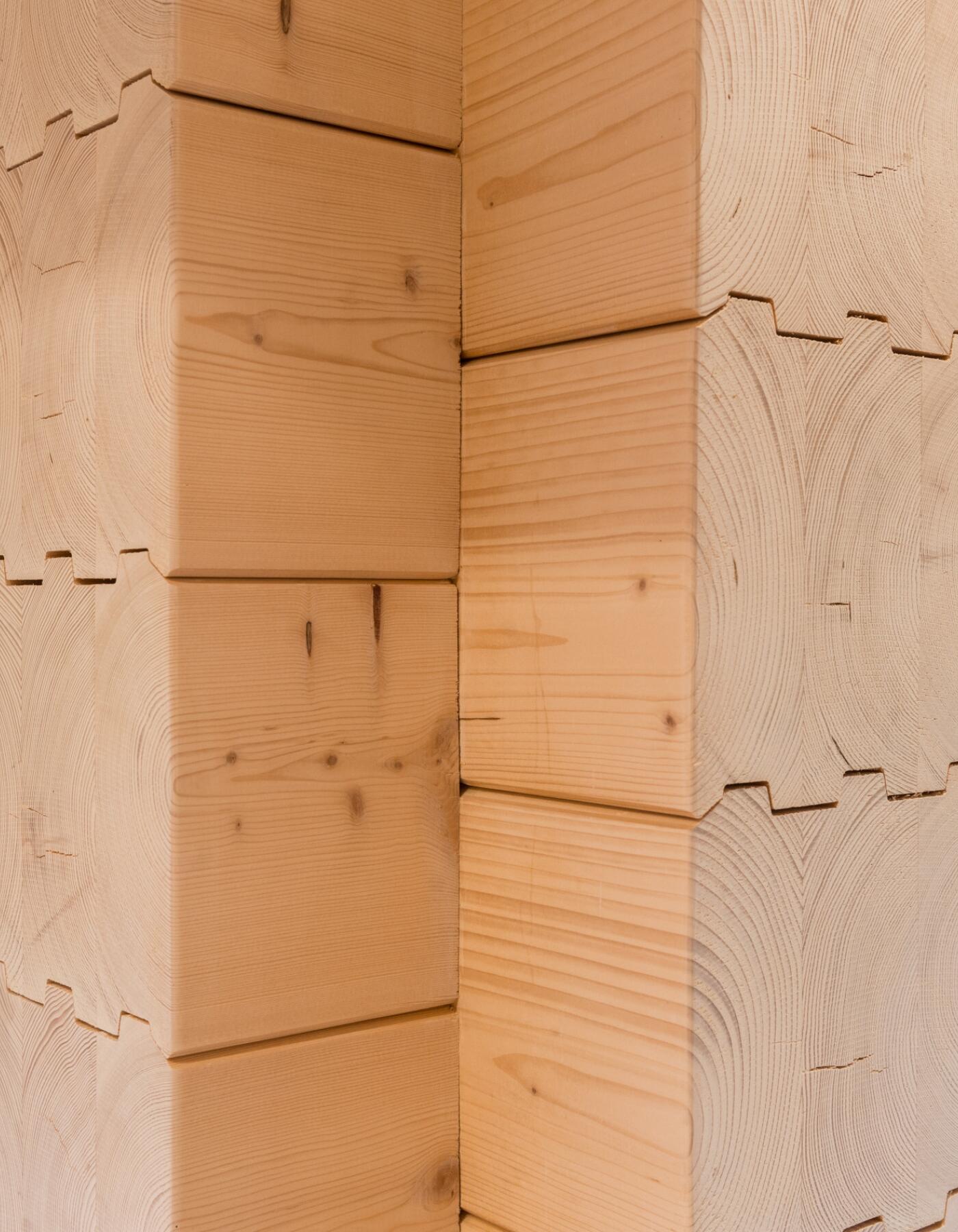 Die Blockbauwand bietet dank der offenen Diffusion des Holzes eine besonders gute Regulierung der Luftfeuchtigkeit im Raum. Zudem reduziert Holz die Strahlenbelastung von außen.